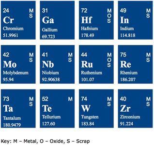 Terra stocks a range of raw materials. Our core minor metal products listed below are available in standard industrial grades and ultra high purity grades with forms ranging from fine powders to large ingots.
